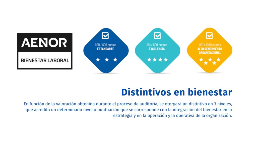 Esta certificación de vanguardia convierte esa base en una narrativa verificable de excelencia, con indicadores objetivos, una puntuación de 300 a 1.000 y tres niveles de certificación – Estandarte, Excelencia y Alto Rendimiento Organizacional – y conecta el bienestar con indicadores estratégicos de negocio.