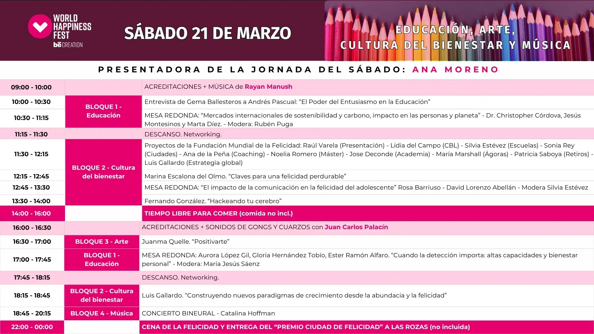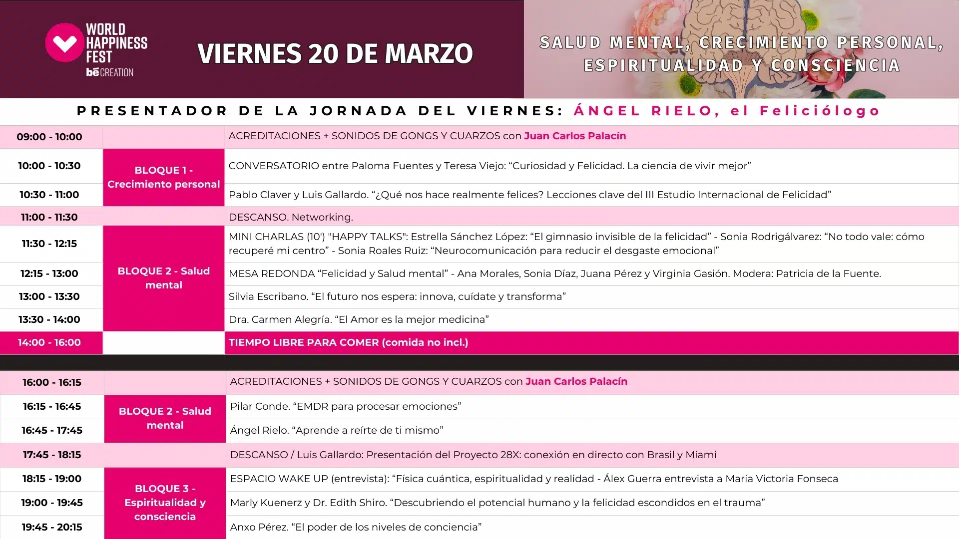 AGENDA DEL FESTIVAL MUNDIAL DE LA FELICIDAD 2025 GRANADA