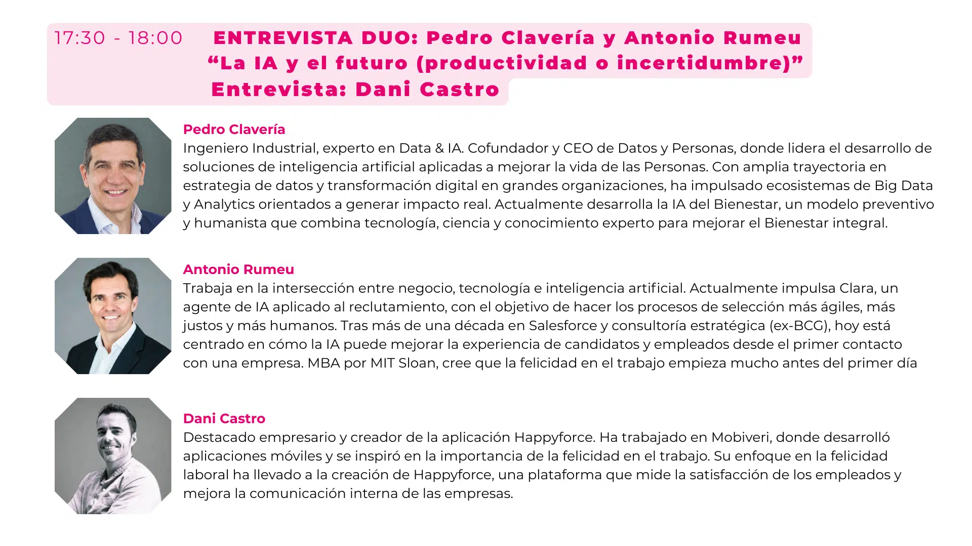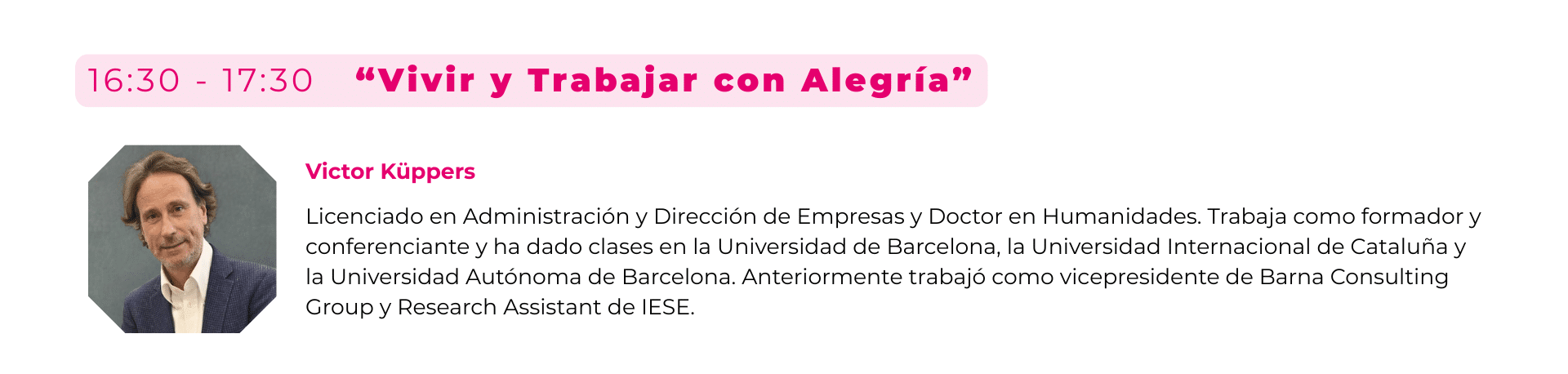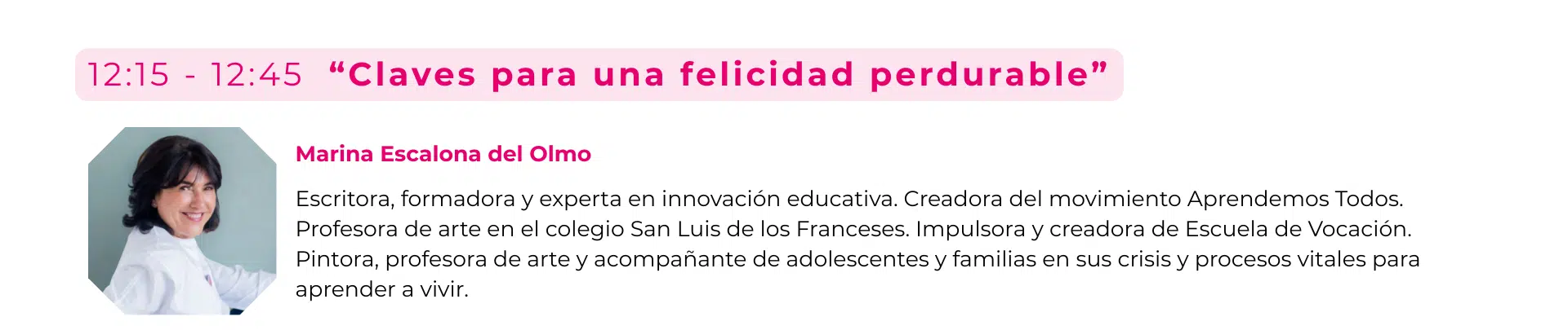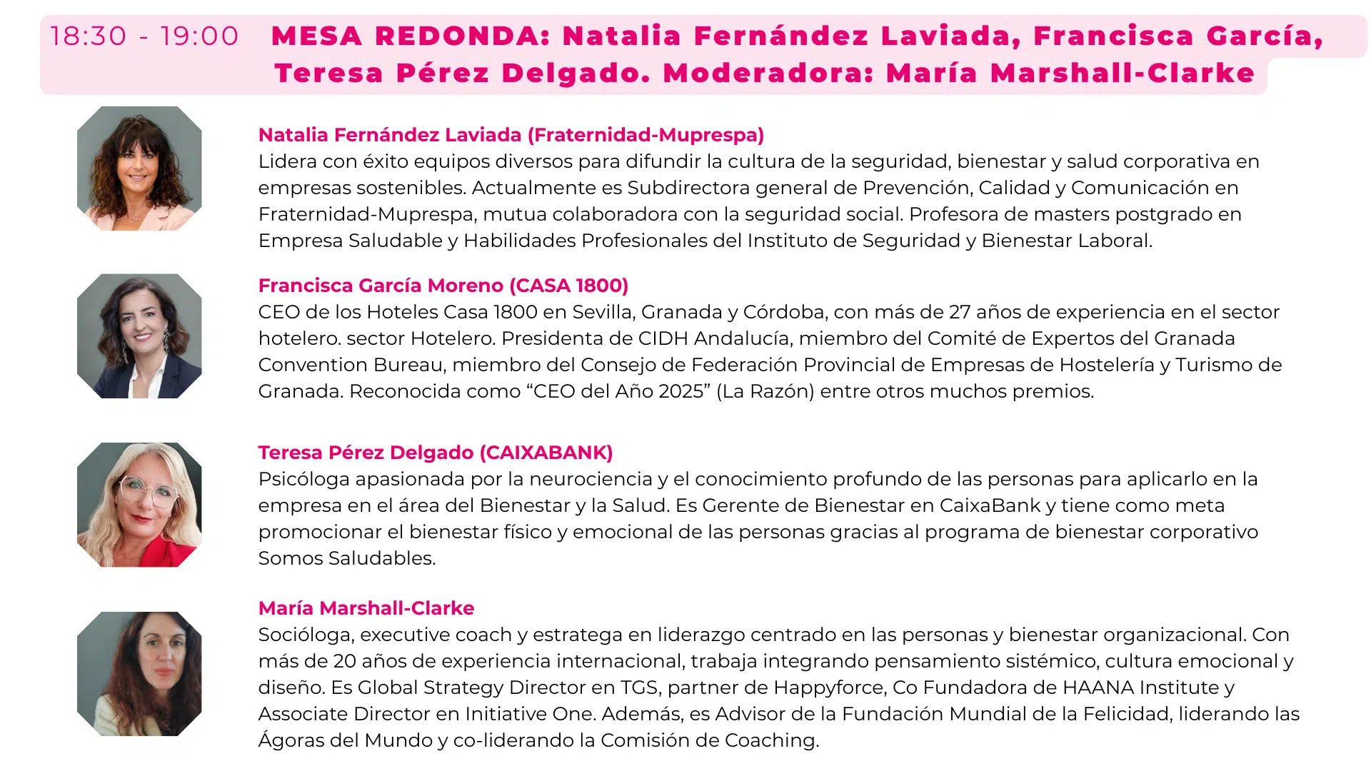 Se celebrarán unas y breves charlas inspiradoras en la Sala Felicidad de 15:45h a 16:30h. Las plazas son limitadas y por ello es necesario inscribirse previamente de forma gratuita haciendo clic AQUÍ.