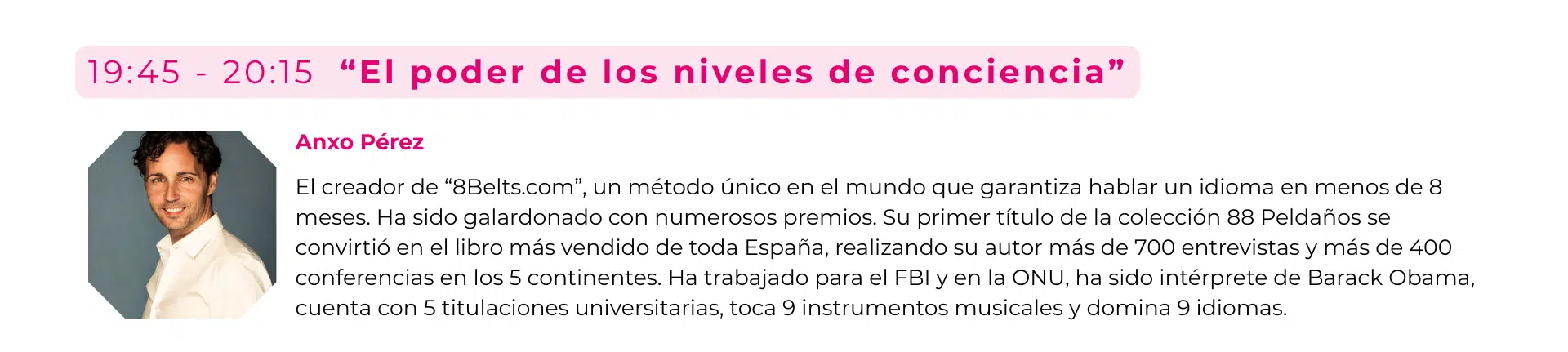 Prepárate para una experiencia inolvidable en la que podrás compartir de forma interactiva y enriquecedora conferencias, talleres y actividades que despertarán tu creatividad y potenciarán tu bienestar. Cuatro días, cuatro temáticas. Una entrada para cada día.