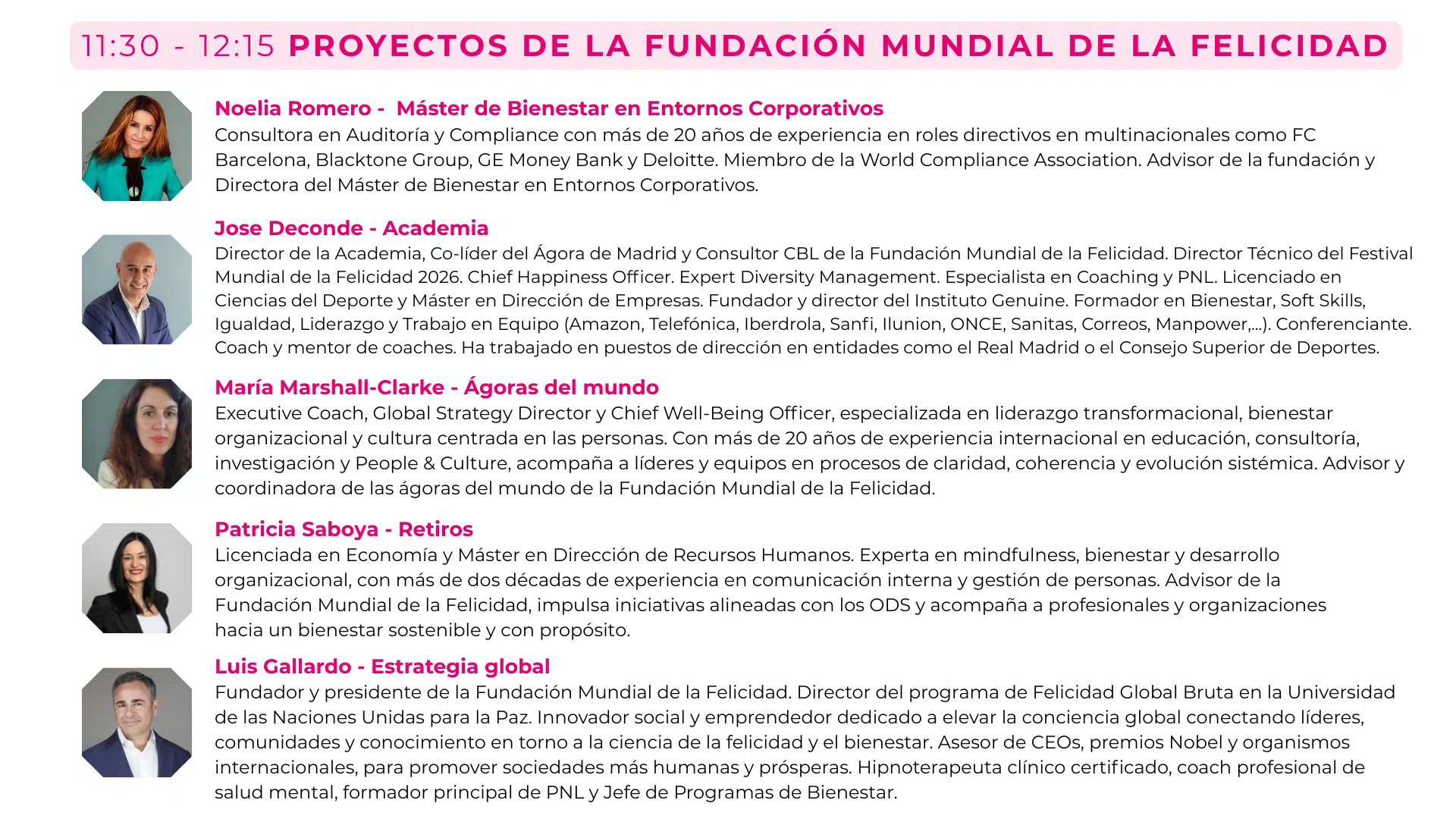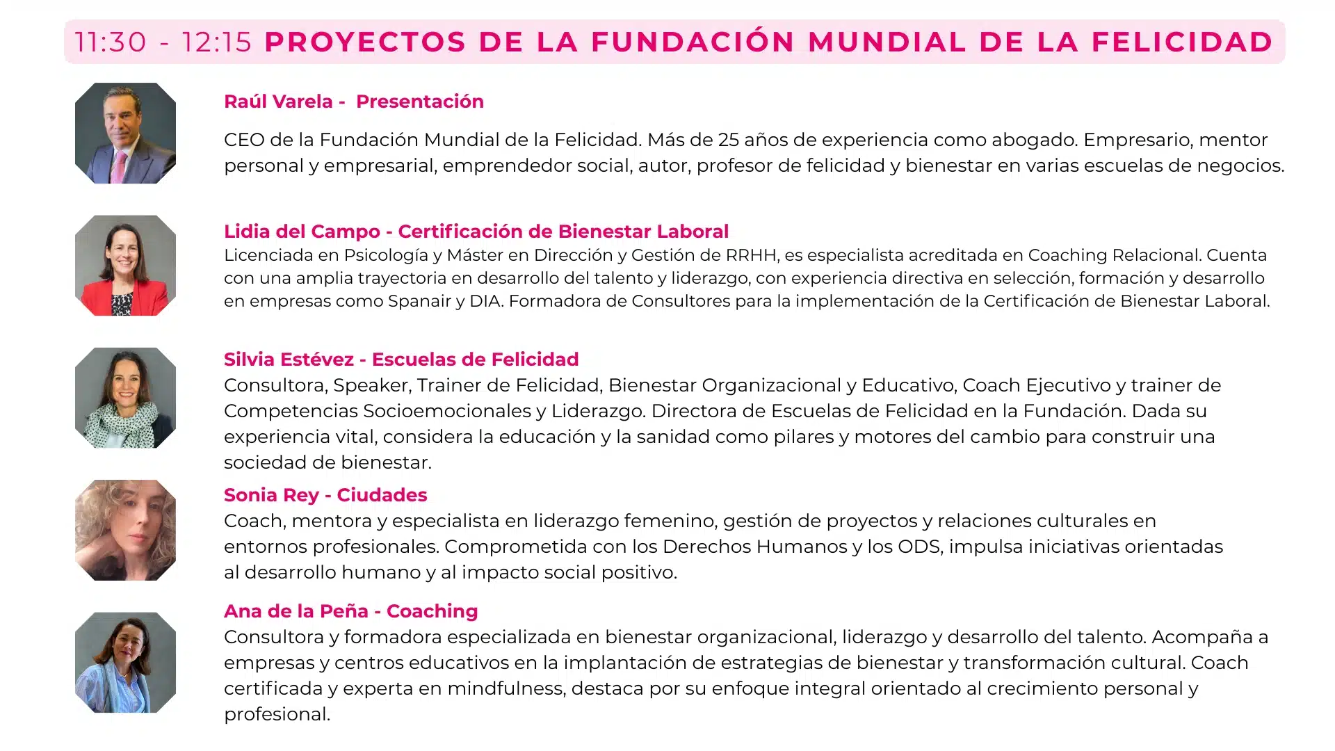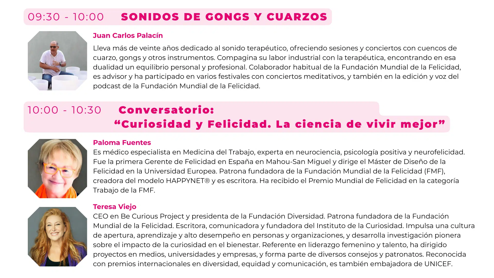 Desde la Fundación Mundial de la Felicidad te invitamos a formar parte de esta celebración internacional del bienestar, donde convergen la innovación, la cultura, la salud mental, la espiritualidad, la educación emocional y el liderazgo consciente.