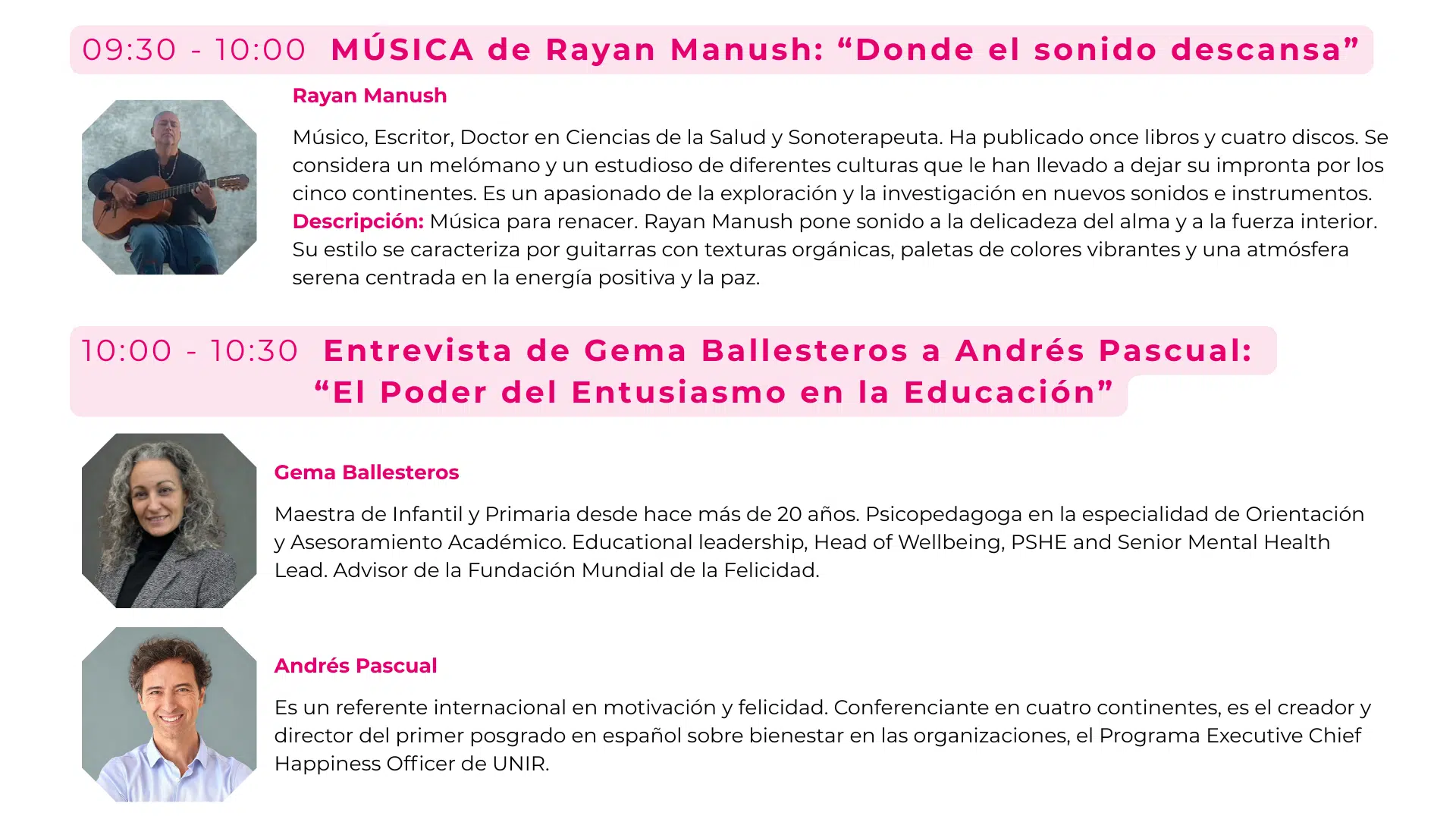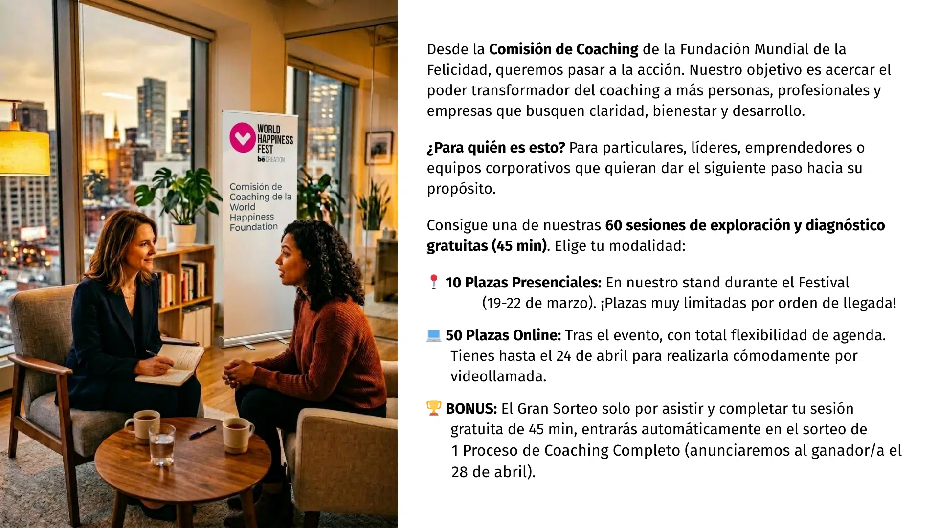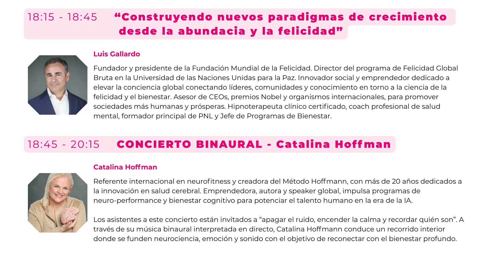 Desde la Fundación Mundial de la Felicidad te invitamos a formar parte de esta celebración internacional del bienestar, donde convergen la innovación, la cultura, la salud mental, la espiritualidad, la educación emocional y el liderazgo consciente.