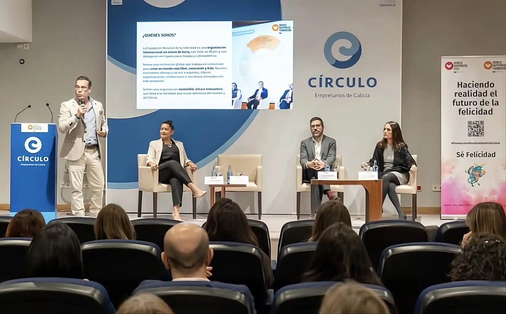 Presentación de la Certificación de Bienestar Laboral (CBL) de AENOR y la Fundación Mundial de la Felicidad en el Círculo de Empresarios de Galicia (Vigo), con el apoyo de la Xunta de Galicia a través del Instituto Galego de Promoción Económica (IGAPE).